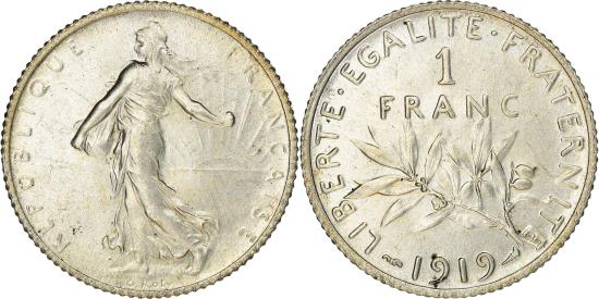 | | Coin, France, Semeuse, Franc, 1919, Paris, , Silver, KM:844.1, Gadoury:467 | | | Semeuse, Figure sowing seed, Leafy branch divides date and denomination, Without mint mark. | | FEATURES |