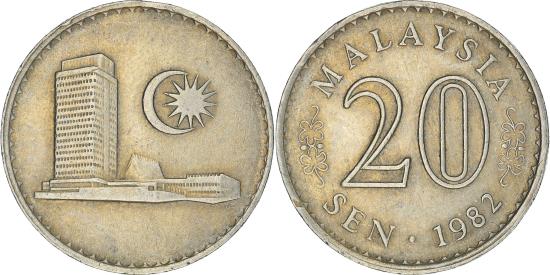 | Coin, Malaysia, 20 Sen, 1982, Franklin Mint, , Copper-nickel, KM:4 |
