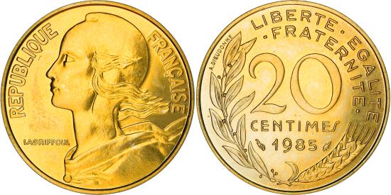 | | #[380807] COIN, FRANCE, MARIANNE, 20 CENTIMES, 1985, PARIS, , ALUMINUM-BRONZE | | | Marianne | | Liberty bust left | | Denomination above date, grain sprig below, laurel branch at left | | Henri Lagriffoul | | Without mint mark. 1991-1993 dated coins, non-Proof, exist in both coin and medal alignment. | | CHARACTERISTICS |