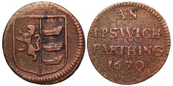 | 17th Century Suffolk Farthing, Ipswich Town 1670 |