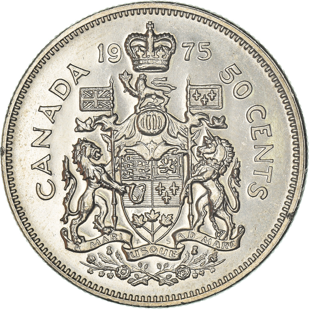 | | #[365719] COIN, CANADA, ELIZABETH II, 50 CENTS, 1975, ROYAL CANADIAN MINT, OTTAWA, | | | Young bust right | | Crown divides date above arms with supporters, denomination at right | | Arnold Machin | | CHARACTERISTICS |