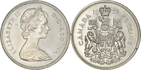 | Coin, Canada, Elizabeth II, 50 Cents, 1975, Royal Canadian Mint, Ottawa, |