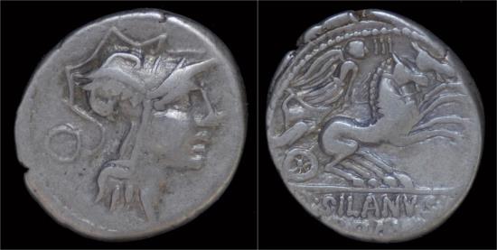 rev: Victory in biga right, III above, D.SILANVS L.F / ROMA in exergue