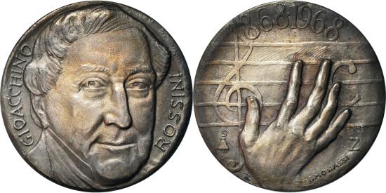 | | Italy, Medal, Rossini, Centenarion della Morte, Musique, 1968, Monassi, | | | N°125 | | FEATURES |