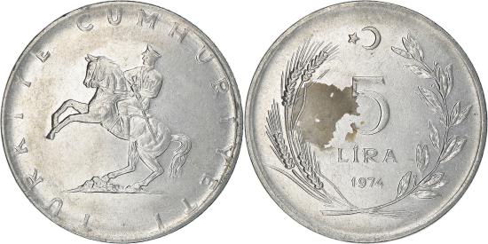 | | Coin, Turkey, 5 Lira, 1974, , Stainless Steel, KM:905 | | | Atat, Value and date within wreath | | FEATURES |
