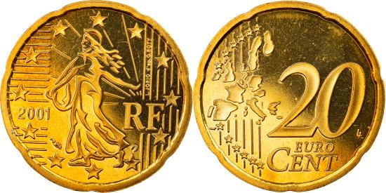| | Coin, France, 20 Euro Cent, 2001, Paris, Proof, , Brass, KM:1286 | | | The seed sower divides date and RF, Denomination and map, Laurent Jorb | | FEATURES |