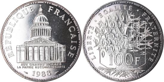 Coin, France, Panthéon, 100 Francs, 1988, Paris, , Silver, KM:951.1Coin, France, Panthéon, 100 Francs, 1988, Paris, , Silver, KM:951.1