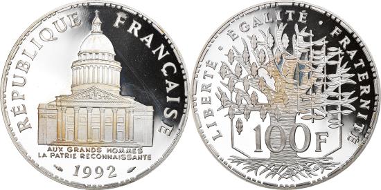 | | Coin, France, Panthéon, 100 Francs, 1992, Paris, BE, , Silver | | | Panthéon, Pantheon, date below, Leafy design above denomination, Without mint mark. | | FEATURES |