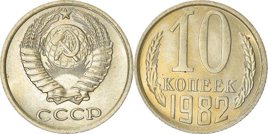 | | Coin, Russia, 10 Kopeks, 1982, , Copper-Nickel-Zinc, KM:130 | | | National arms, Value and date flanked by sprigs | | FEATURES |