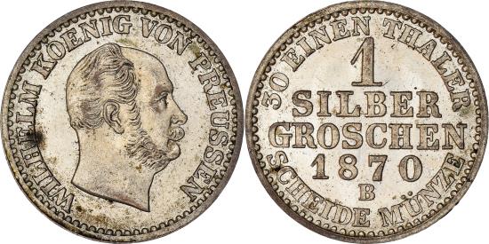 | | Coin, German States, PRUSSIA, Wilhelm I, Groschen, 1870, Hannover, | | | Head right, Denomination and date, WILHELM KOENIG VON PREUSSEN | | FEATURES |