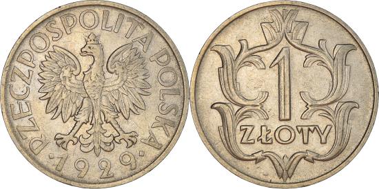 | | Coin, Poland, Zloty, 1929, Warsaw, , Nickel, KM:14 | | | Crowned eagle with wings open, Value within stylized design | | FEATURES |