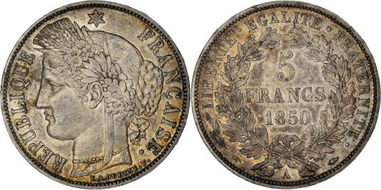 | | Coin, France, Cérès, 5 Francs, 1850, Paris, , Silver, KM:761.1 | | | Cérès, Liberty head with grain wreath left, Denomination within wreath | | FEATURES |
