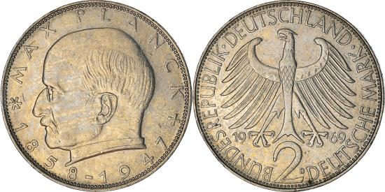 | | Coin, GERMANY - FEDERAL REPUBLIC, 2 Mark, 1969, Munich, | | | Eagle above denomination, Head left, dates below | | FEATURES |
