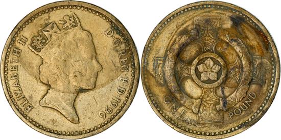 | | Coin, Great Britain, Elizabeth II, Pound, 1996, , Nickel-brass, KM:972 | | | Crowned head right, Celtic Cross, Raphael Maklouf | | FEATURES |