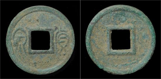 obv: two large chinese characters Huo Quan ("money coin"),without the protruding stroke on top of Quan,single rim around the central hole, raised outside rim