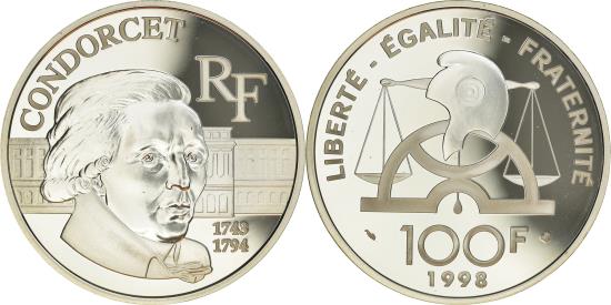 | | Coin, France, Condorcet, 100 Francs, 1998, Paris, Proof, , Silver | | | mintage 3.000 ex | | FEATURES |