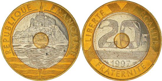 Coin, France, Mont Saint Michel, 20 Francs, 1997, Paris,