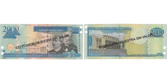 Banknote, Dominican Republic, 2000 Pesos Oro, 2003, 2003, KM:174s2, UNC(64)Banknote, Dominican Republic, 2000 Pesos Oro, 2003, 2003, KM:174s2, UNC(64)