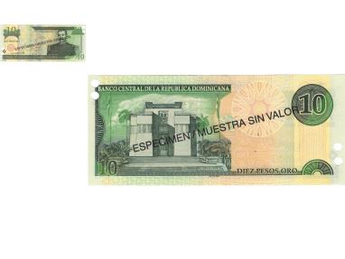 Banknote, Dominican Republic, 10 Pesos Oro, 2001, 2001, Specimen, KM:165s2Banknote, Dominican Republic, 10 Pesos Oro, 2001, 2001, Specimen, KM:165s2