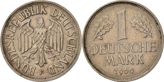 | | Coin, GERMANY - FEDERAL REPUBLIC, Mark, 1960, Stuttgart, | | | Eagle, Denomination flanked by oak leaves, date below | | FEATURES |