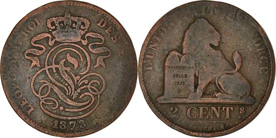 | | Coin, Belgium, Leopold II, 2 Centimes, 1873, , Copper, KM:35.1 | | | Legend in French, DES BELGES | | FEATURES |