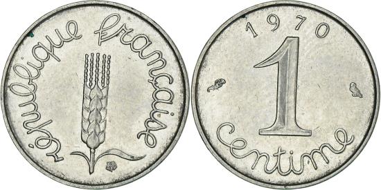 | | Coin, France, Épi, Centime, 1970, Paris, , Stainless Steel, KM:928 | | | Épi, Cursive legend surrounds grain sprig, Cursive denomination, date at top, 1991-1993 dated coins, non-Proof, exist in both coin and medal alignment. Values given here are for medal alignment examples. Pieces struck in coin alignment have been traded for as much as $50.00. | | FEATURES |