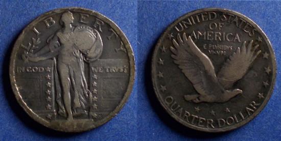 United States, 1917 Type 2, Standing Liberty Quarter F12