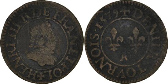 | Coin, France, Henri III, Denier Tournois, 1579, Paris, , Copper |