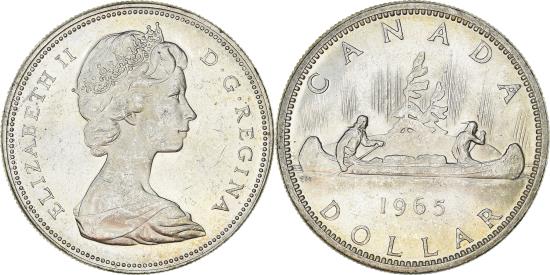 | | Coin, Canada, Elizabeth II, Dollar, 1965, Royal Canadian Mint, Ottawa | | | Young bust right, Voyageur, date and denomination below, Arnold Machin | | FEATURES |