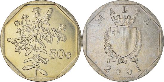 | | Coin, Malta, 50 Cents, 2001, , Copper-nickel, KM:98 | | | Crowned shield within sprigs, Tulliera plant and value, Galea Bason | | FEATURES |