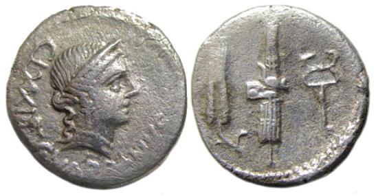 C. Norbanus AR Denarius : Bust of Venus / Corn Ear, Fasces and Caduceus