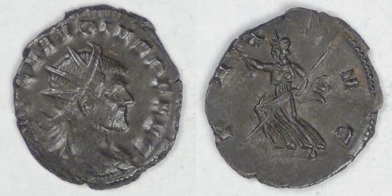 Obv: Radiate, draped and cuirassed bust of Claudius II right with the legend IMP CLAVDIVS P F AVG