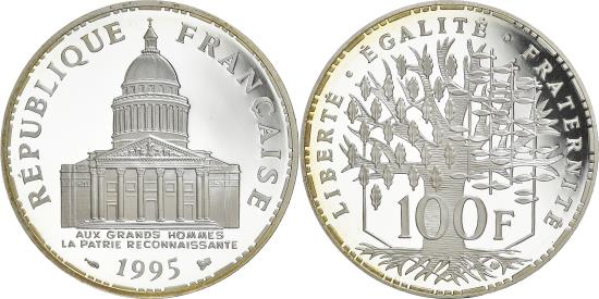 | | Coin, France, Panthéon, 100 Francs, 1995, Paris, Proof, , Silver | | | Panthéon, Pantheon, date below, Leafy design above denomination, Without mint mark. | | FEATURES |
