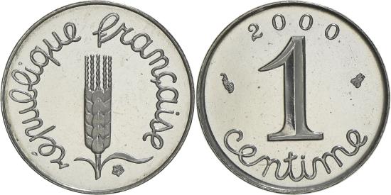 Coin, France, Épi, Centime, 2000, Paris, Proof, , Stainless SteelCoin, France, Épi, Centime, 2000, Paris, Proof, , Stainless Steel