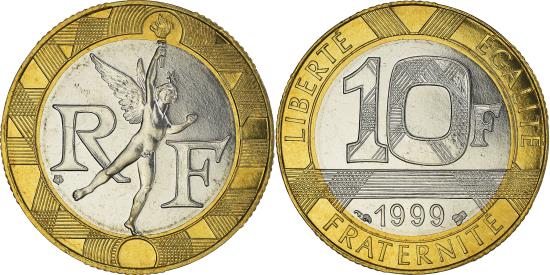 | | Coin, France, Génie, 10 Francs, 1999, Paris, FDC, , Aluminum-Bronze | | | Génie, Winged figure divides RF, Patterned denomination above date | | FEATURES |