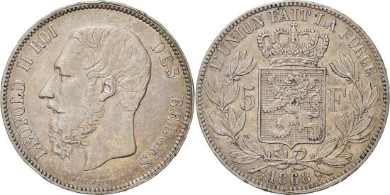 | Coin, Belgium, Leopold II, 5 Francs, 5 Frank, 1868, Brussels, , Silver |