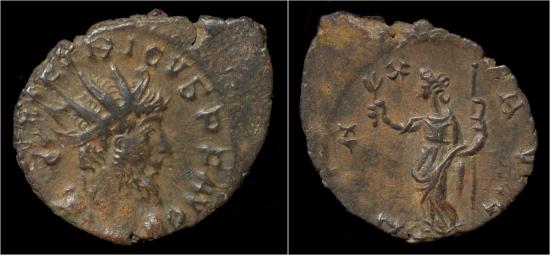 obv: IMP C TETRICVS P F AVG, radiate and cuirassed bust right