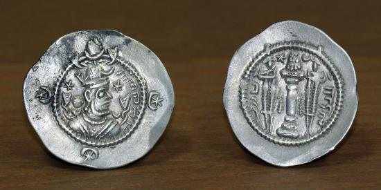 Sassanian Empire AR Drachm, Kavadh I (499-531 AD), Mint: Darbar (AIRĀN), Date: 32 OBV: Kavadh I wearing mural crown with frontal crescent & two ribbons, ribbons and crescents on shoulders; with star behind head. REV: Fire altar with two attendants; star and crescent flanking flames. Weight: 4.05gm Size: 30mm Good Very Fine.