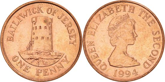 | | Coin, Jersey, Elizabeth II, Penny, 1994, , Copper Plated Steel, KM:54b | | | Young bust right, Le Hocq Watchtower, St. Clement | | FEATURES |