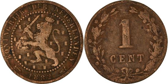 | | Coin, Netherlands, William III, Cent, 1882, , Bronze, KM:107.1 | | | Crowned rampant lion, left, within beaded circle, date below, Value within wreath, Privy mark: Broadaxe, KONINGRIJK DER NEDERLANDEN | | FEATURES |