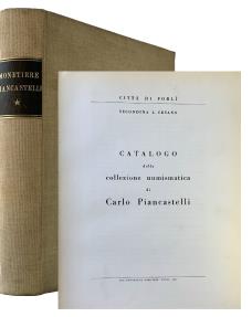 Catalogo della Collezione Numismatica di Carlo Piancastelli, by S. L. Cesano, 449 pages, 30 fine plates, tan linen, black spine label. Fine. The first part (Roman Imperial) of the publication of this the collection; later sections appeared in 1972