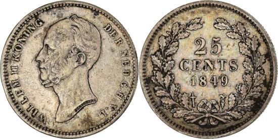 | | Coin, Netherlands, William II, 25 Cents, 1849, Utrecht, , Silver, KM:76 | | | Wreath of 2 oak branches with 58 leaves, William II's Bust, WILLEM II KONING DER NED.G.H.V.L // Groothertog van Luxemburg // Grandduke of Luxembourg | | FEATURES |