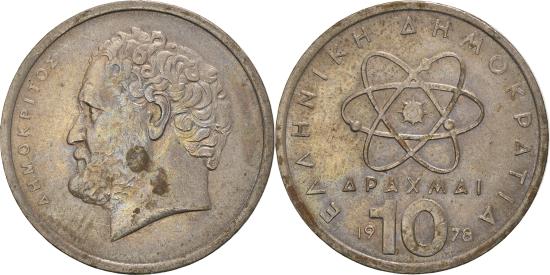 | | Coin, Greece, 10 Drachmai, 1978, , Copper-nickel, KM:119 | | | Atom design, Head left | | FEATURES |