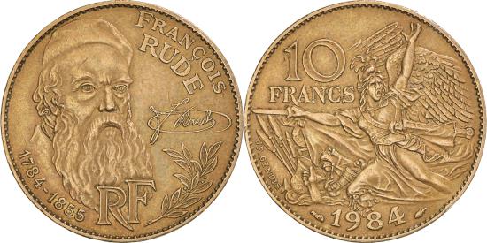 | | Coin, France, François Rude, 10 Francs, 1984, Tranche B, | | | François Rude, Head 3/4 right, RF below, Armed figure divides denomination and date, J. P. Gendis | | FEATURES |