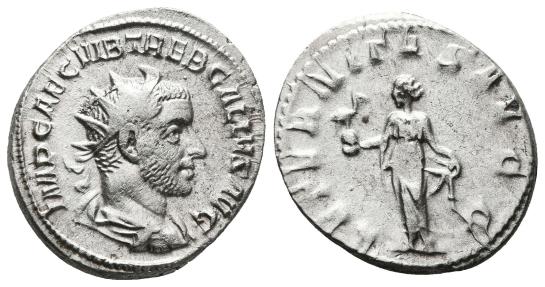 Obv/ IMP CAE C VIB TREB GALLVS AVG. Radiate, draped and cuirassed bust right.