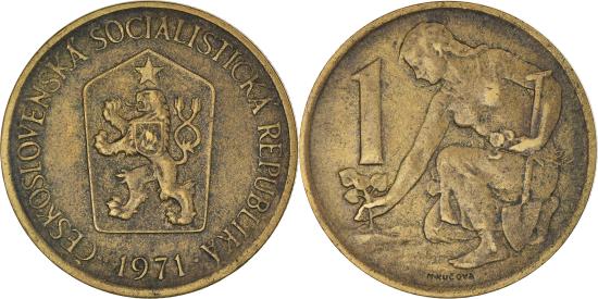 | | Coin, Czechoslovakia, Koruna, 1971, , Aluminum-Bronze, KM:50 | | | Czech lion with socialist shield within shield, date below, Woman planting linden tree, denomination at left, Date varieties exist. | | FEATURES |