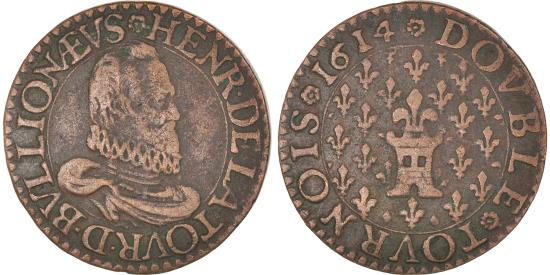 | Coin, France, Henri de la Tour d'Auvergne, Double Tournois, 1614, Bouillon |