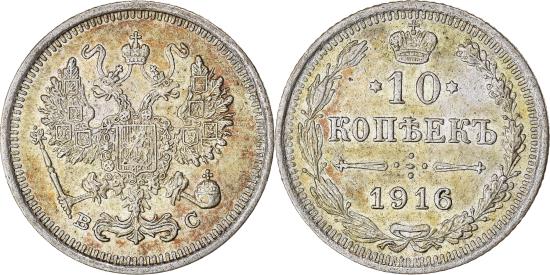 Coin, Russia, Nicholas II, 10 Kopeks, 1916, Saint-Petersburg, , SilverCoin, Russia, Nicholas II, 10 Kopeks, 1916, Saint-Petersburg, , Silver