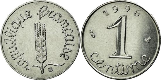| | Coin, France, Épi, Centime, 1996, , Stainless Steel, Gadoury:91 | | | Épi, Cursive legend surrounds grain sprig, Cursive denomination, date at top | | FEATURES |