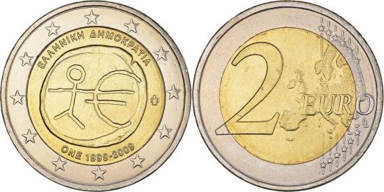 | | Greece, 2 Euro, EMU, 2009, Athens, , Bi-Metallic, KM:227 | | | Stick figure and Euro symbol | | FEATURES |